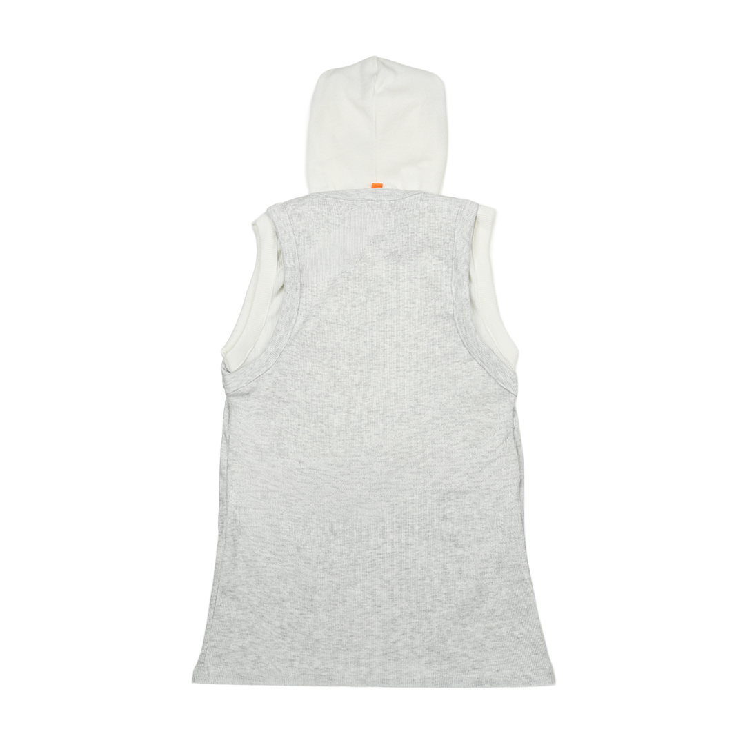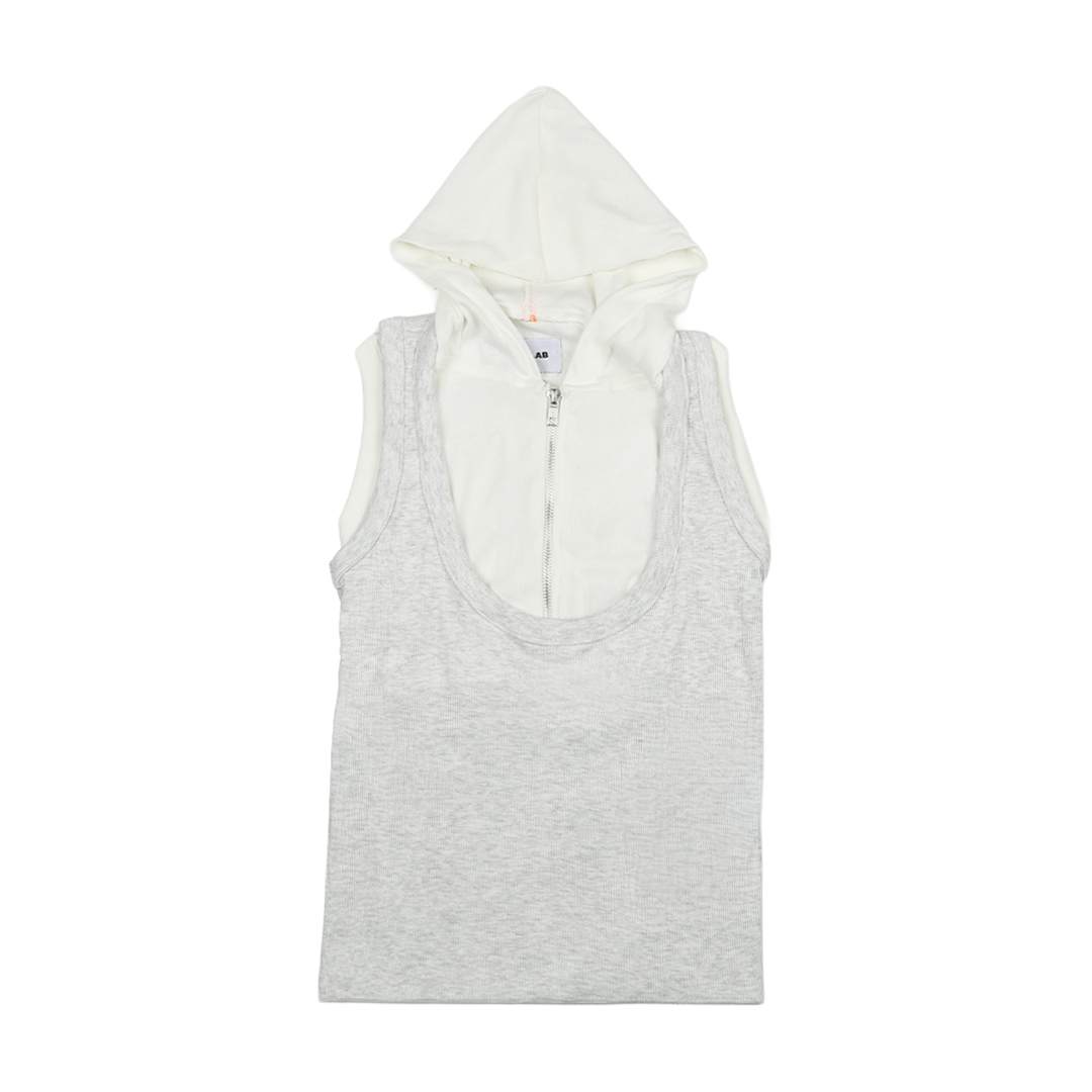 A new evolution of our classic double-layered tank. This updated version features an added hood and a front zipper, bringing versatility and edge to the original silhouette. The layered construction creates depth and structure, while the hood and zipper introduce a functional, modern twist.