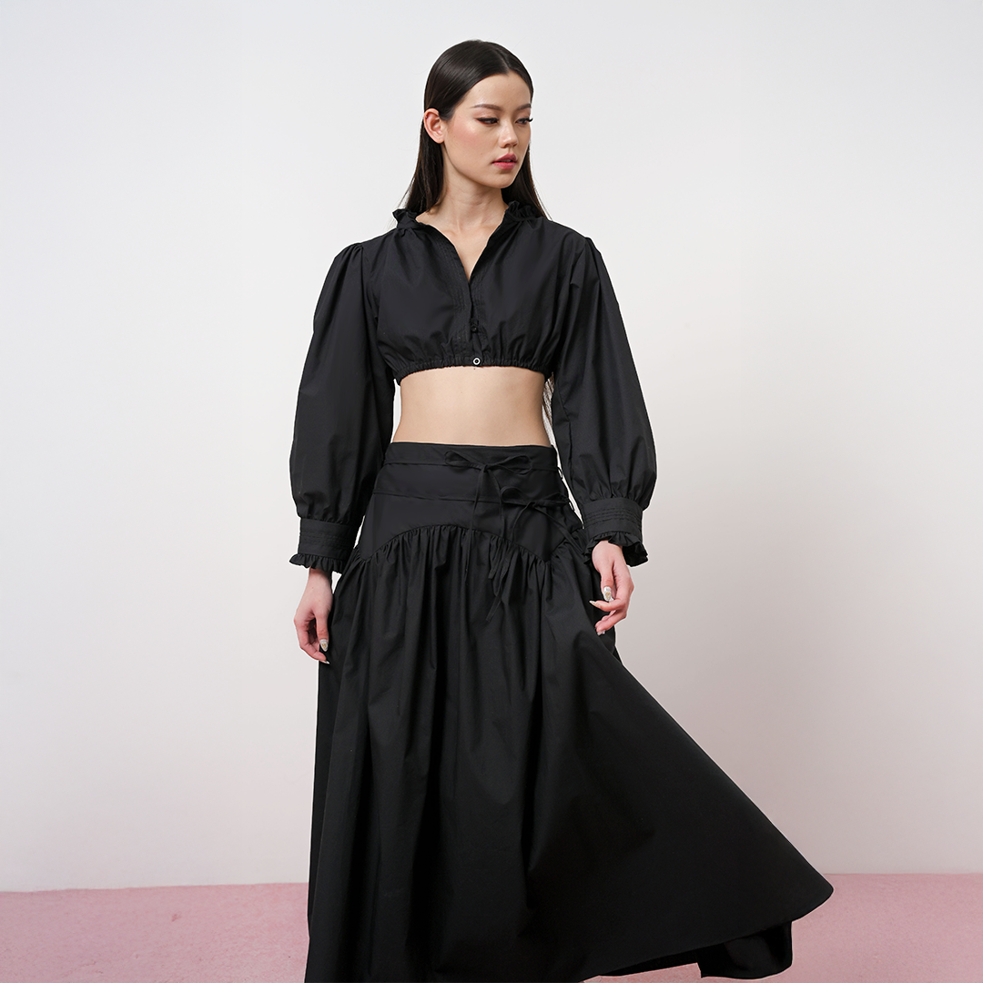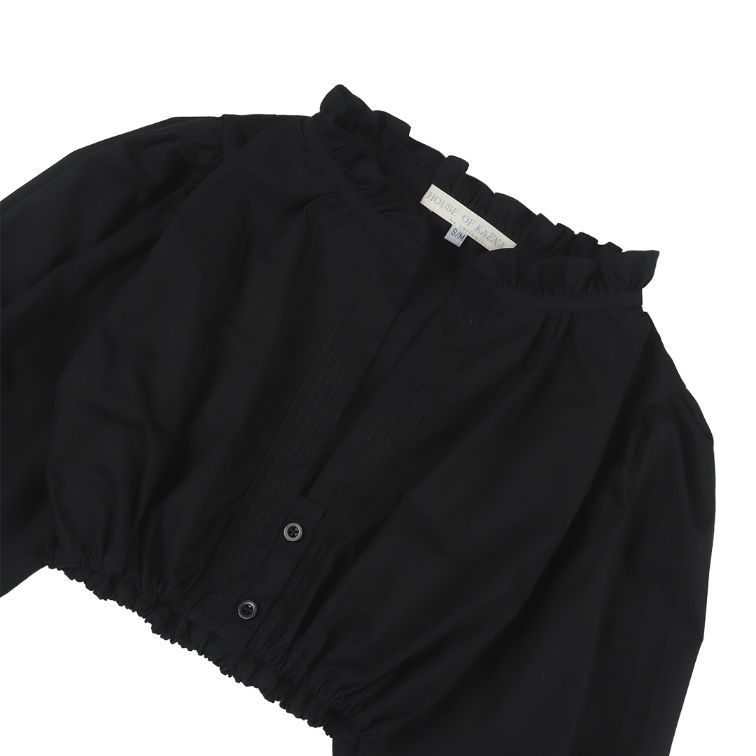 The Iris Blouse is a vintage-inspired top featuring delicate pleats, a ruffled collar, and soft puffed sleeves—echoing the romantic elegance of European fashion. Pair it with our Iris Drop-Waist Skirt for a beautifully flattering silhouette. Crafted from 100% premium cotton.