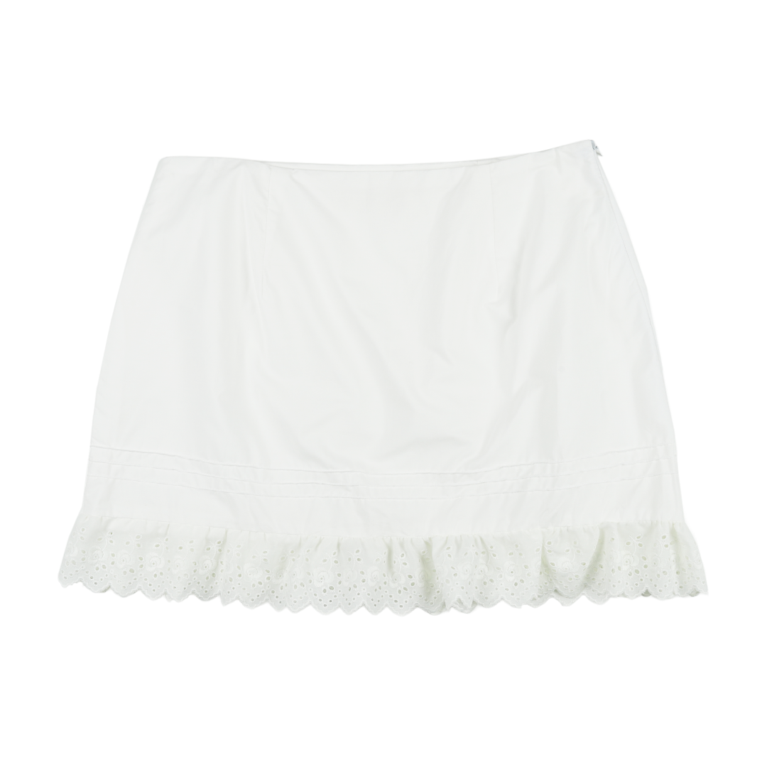 The Odette Skirt pairs perfectly with the blouse—a cute mini silhouette crafted from 100% cotton in Bali. Finished with folded pleats and delicate lace trims.