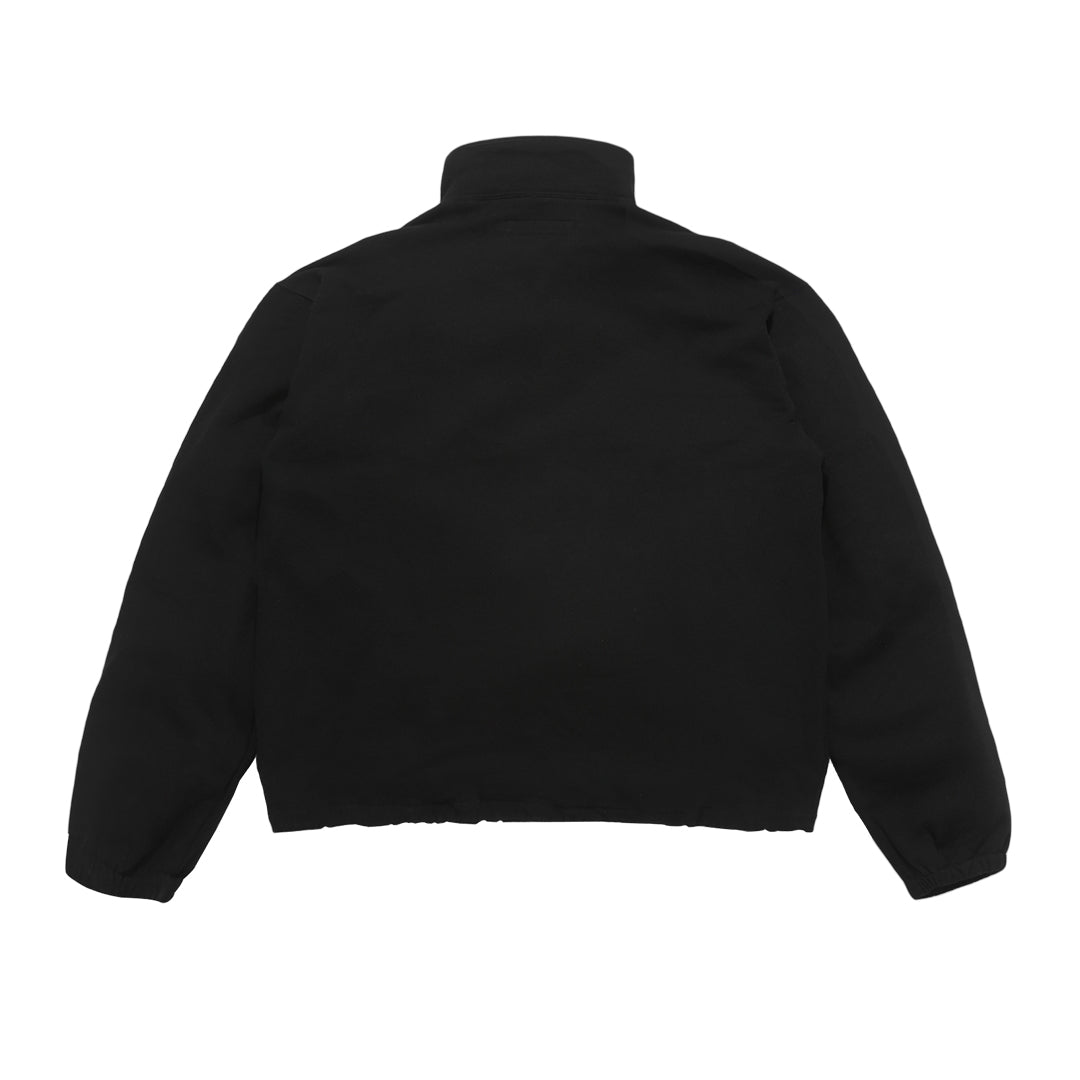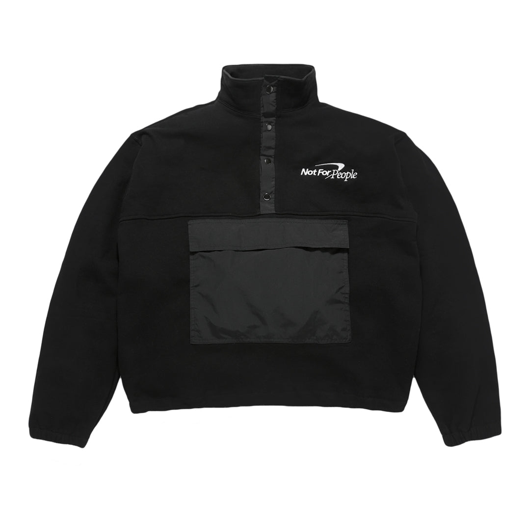100 % fleece Cotton pullover crewneck sweatshirt with quarter zip custom chenille embroidery graphics at front. Made in Indonesia.