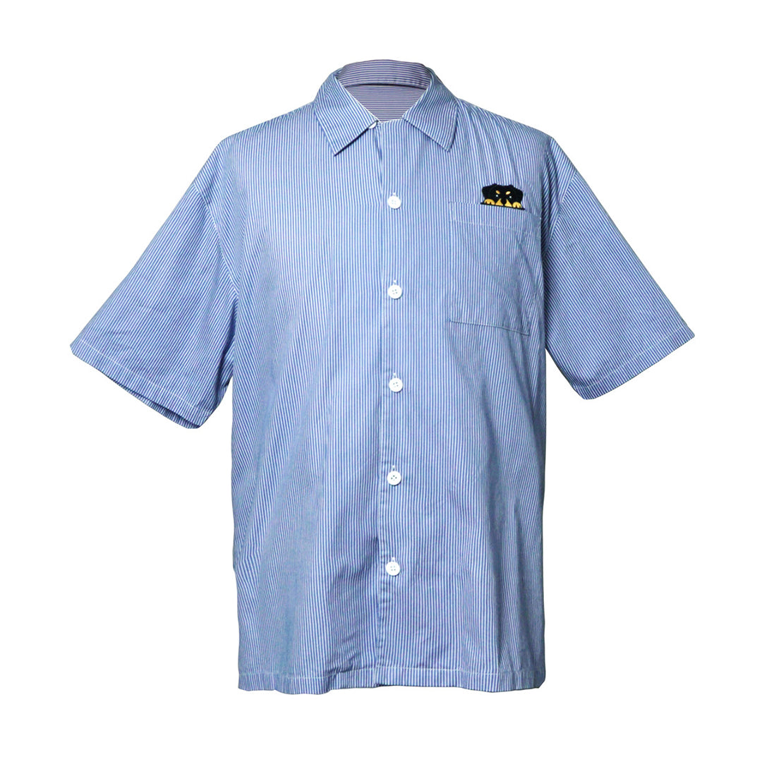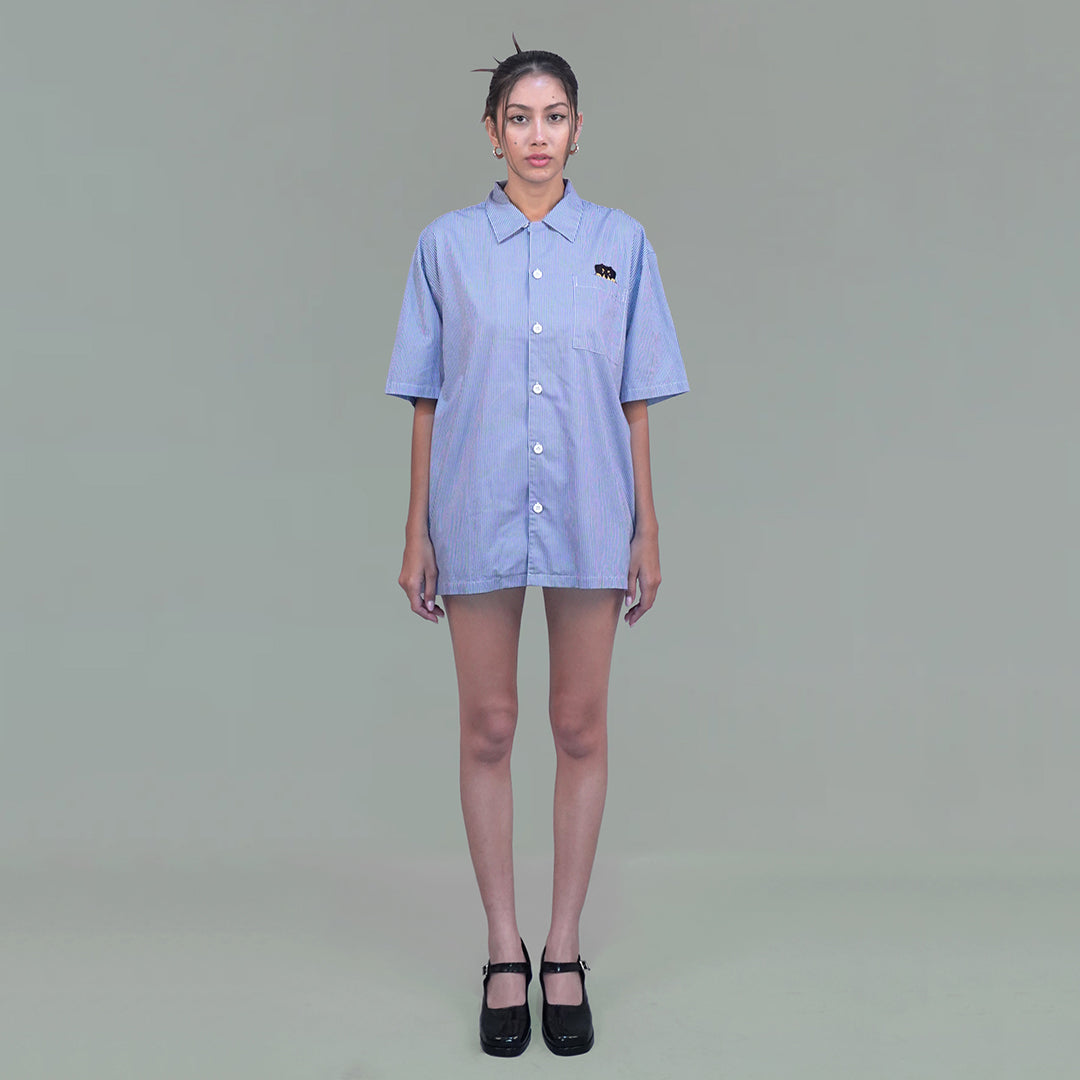 A relaxed-fit, short-sleeve button-up shirt with a timeless striped pattern. Designed for effortless styling, the Collin Shirt features a subtle yet playful embroidered dog detail on top of the patch pocket. Crafted from lightweight, breathable fabric, it's perfect for everyday wear while maintaining a refined, casual aesthetic.