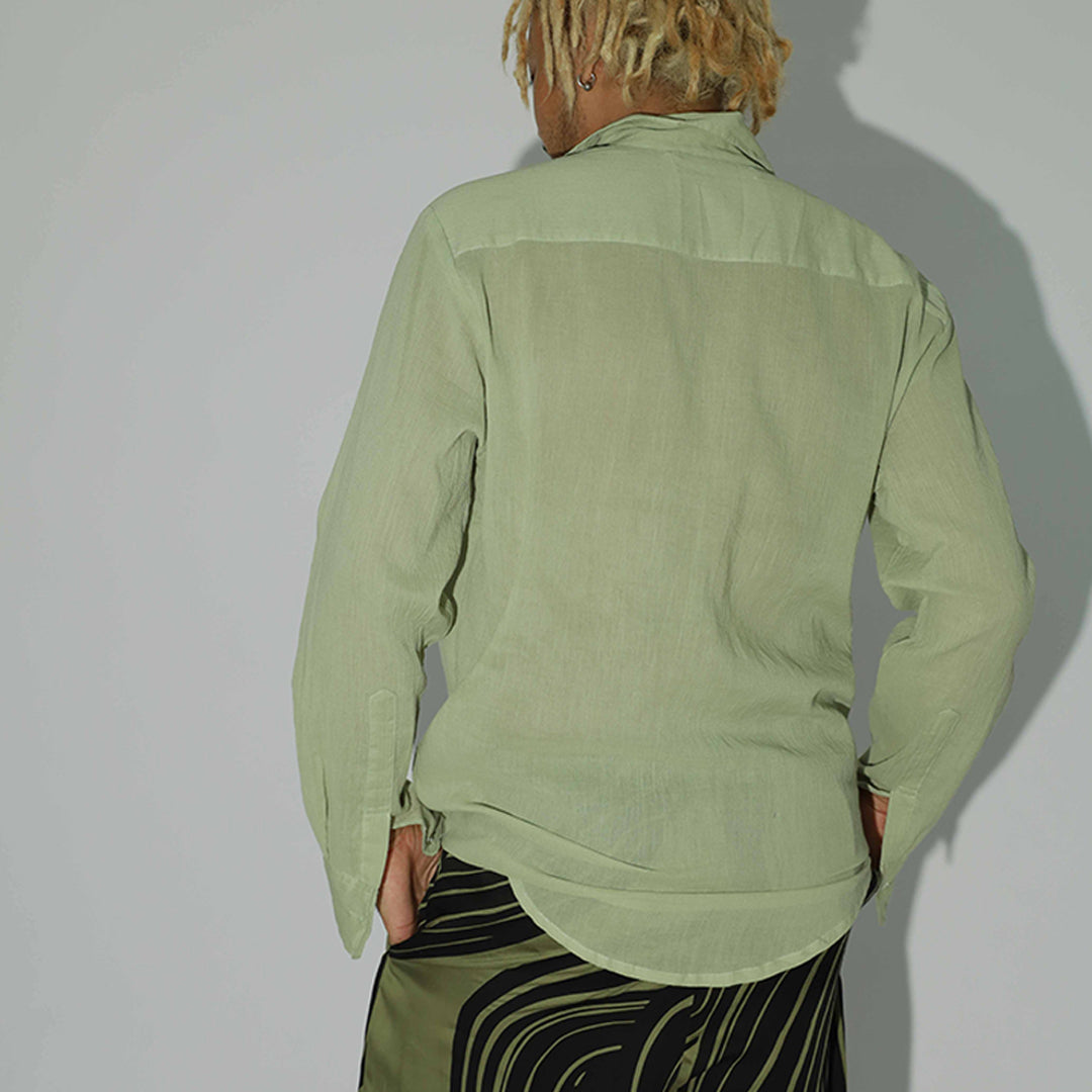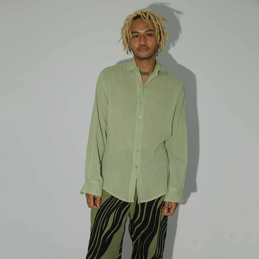 This long-sleeve men’s shirt, with very light fabric, is designed specifically for breezy nights in the tropics, exuding a timeless and effortless style.