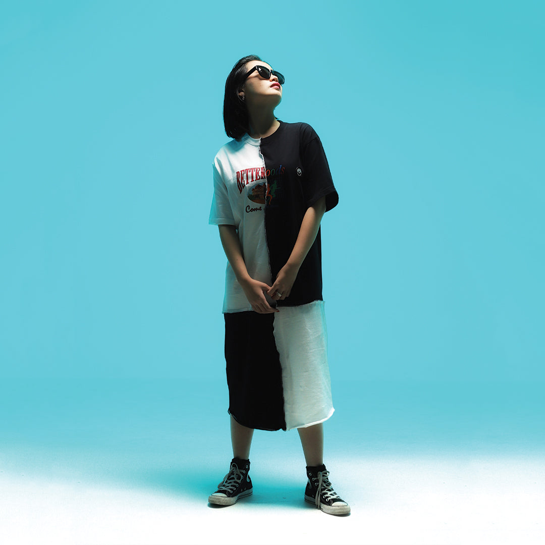 Exclusive Release Buru Studio, Reworked Dress combining two different t-shirts into one.