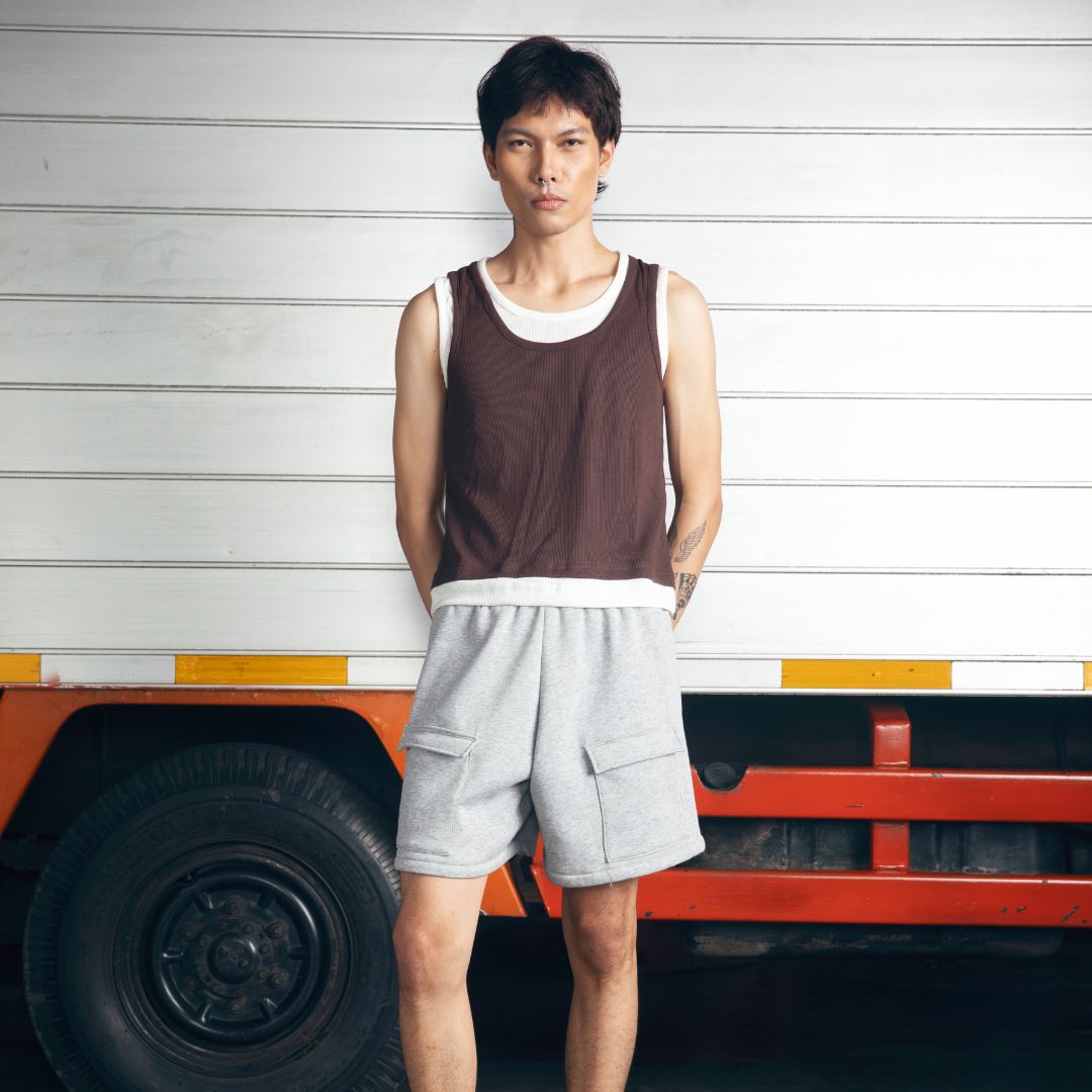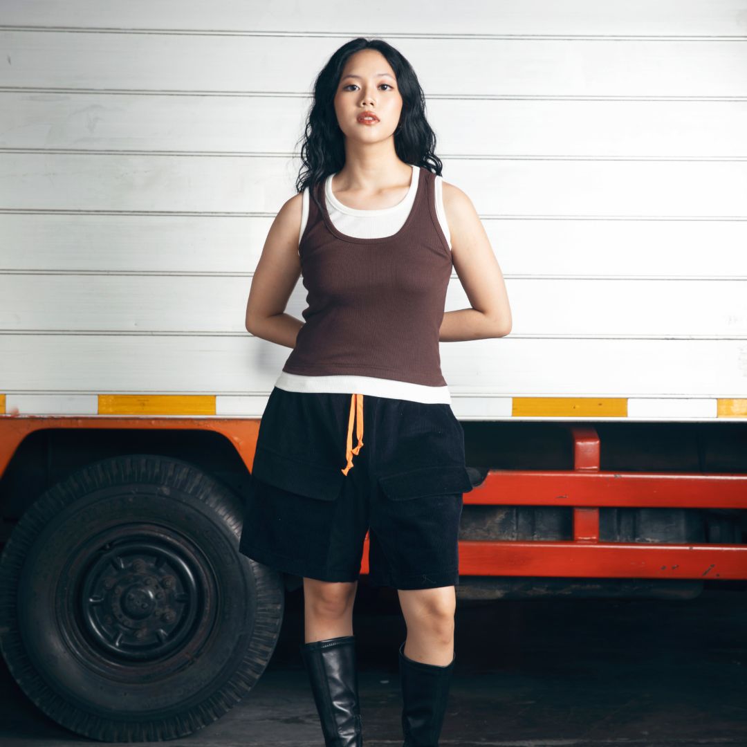 DOUBLE LAYERED TANK TOP CHOCOLATE - WHITE