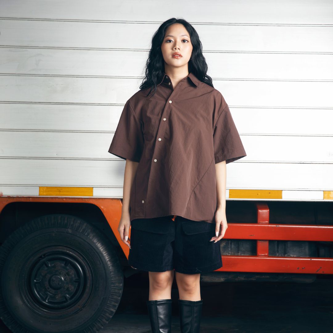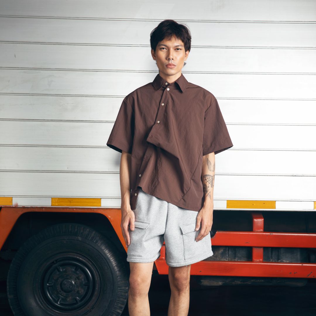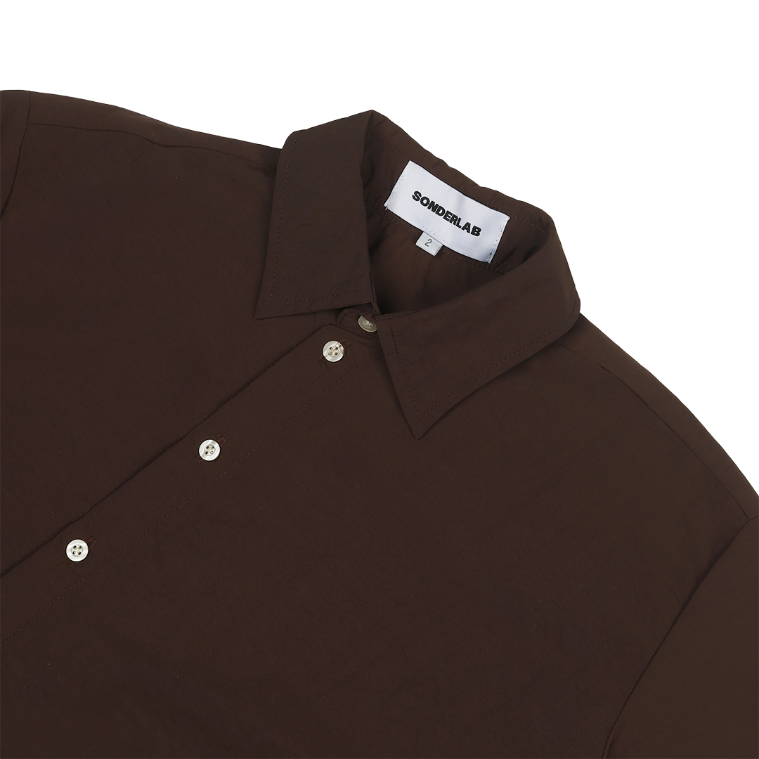Lightweight boxy nylon shirt with a twist inspired by our classic twisted shirt. The simple, elevated design is complemented by the signature orange tab, adding a unique touch to an otherwise timeless piece.