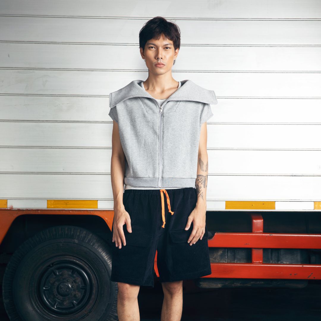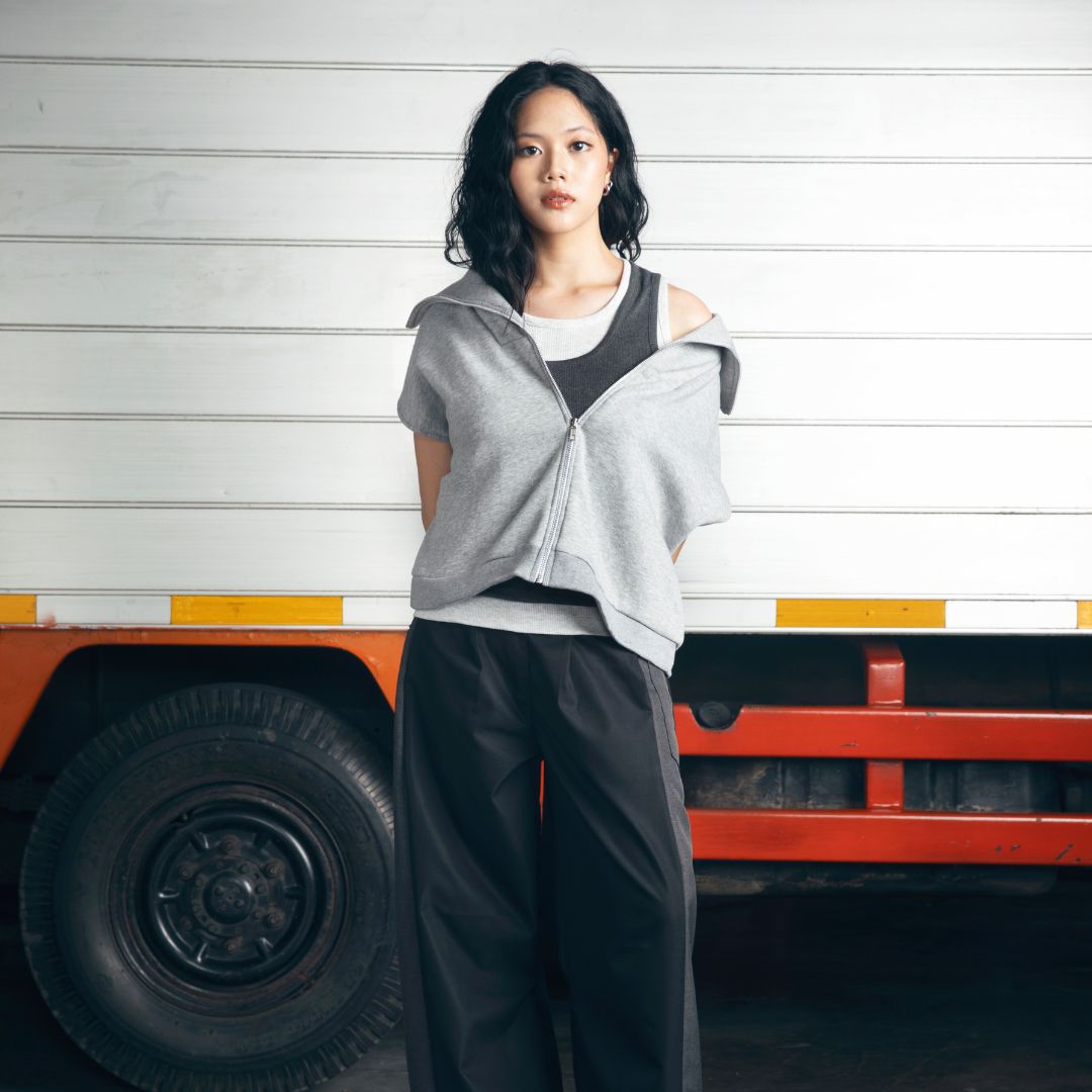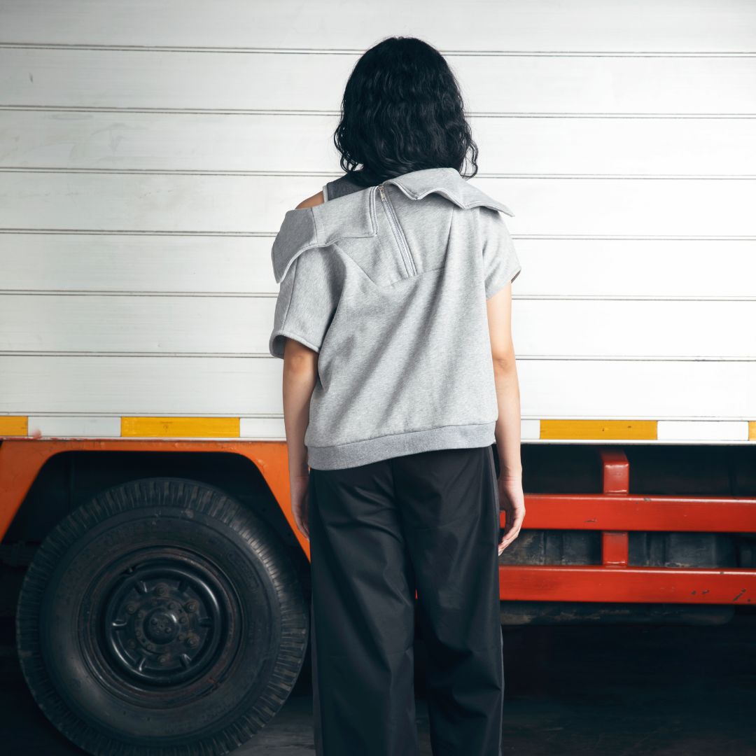 A versatile sweat-material poncho designed for modular wear. Built to be worn both front and back, it features two adjustable zipper systems—one side with a full-length zipper, the other with a half zipper—allowing you to change the silhouette, airflow, and style on the go. Soft, comfortable, and transformable, it’s a dynamic layer that shifts with your needs.