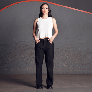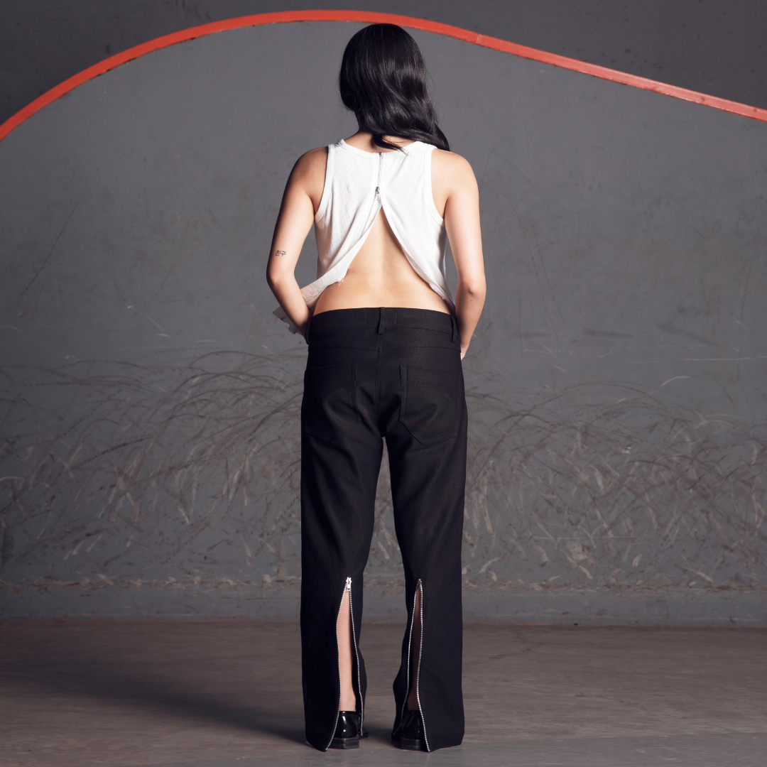 ZIPPER STRAIGHT JEANS BLACK DENIM