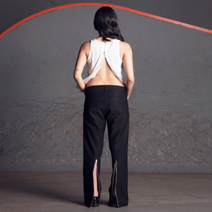 Combining structure with statement detailing, these straight-leg jeans are crafted from denim and finished with exposed zippers running up the back of the legs. The zippers can be left partially open to show skin or worn fully zipped for a clean finish.
