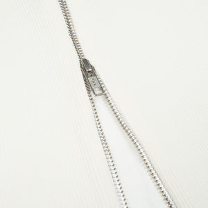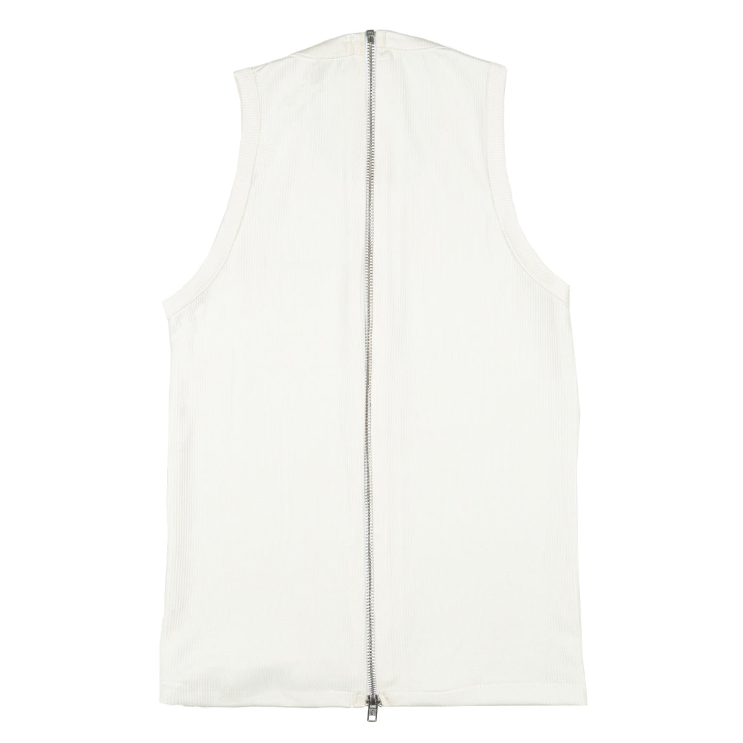 This zipper tank redefines a basic tank top with a bold twist. Made from soft ribbed fabric, it showcases a daring open-back design that fastens with a central zipper.