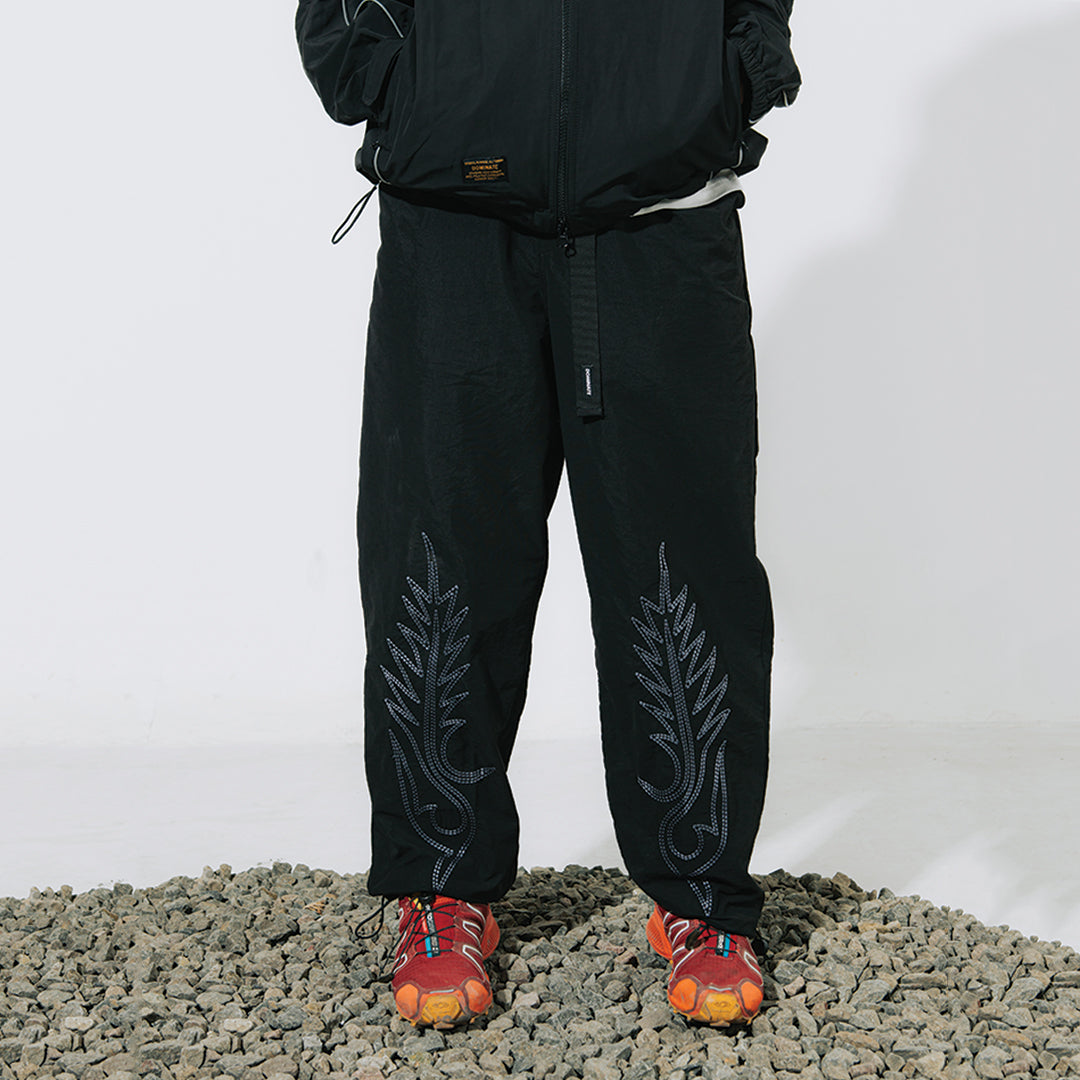 These understated, relaxed fit pants with a direct embroidery optimized for travel and can be worn in formal and casual situations. Built with a thin and lightweight material.  The elasticated waist features an interior drawstring adjustment as well as belt loops for a wide range of situations.
