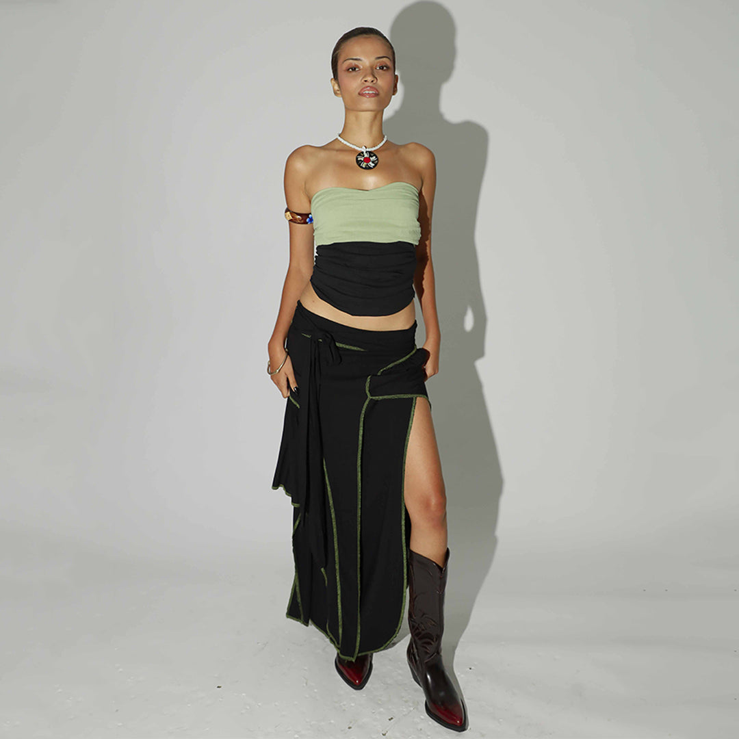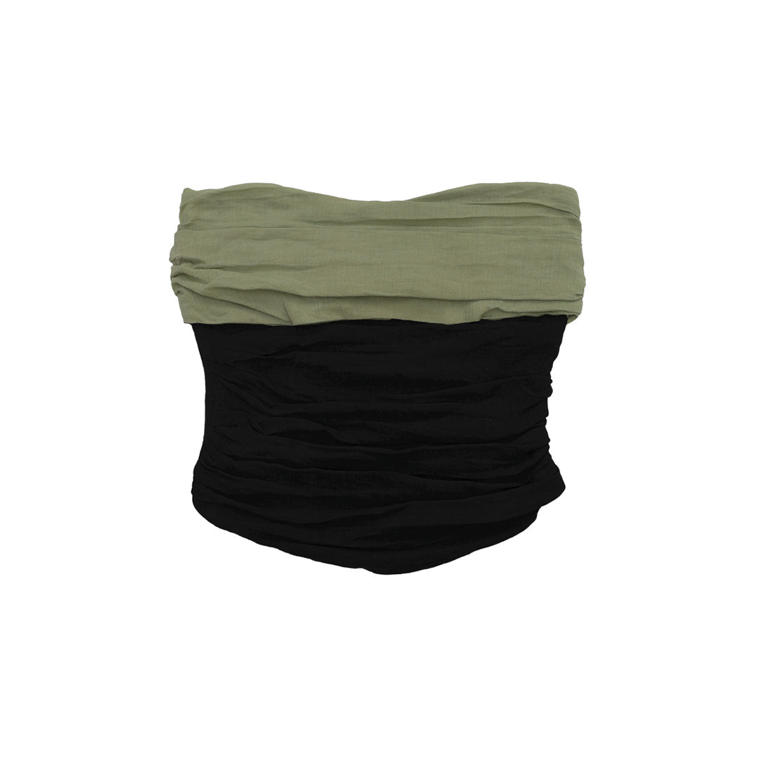 Your classic tube top reinvented with ruching and folded, layered fabric detailing. A wardrobe essential you can style in many ways, with a unique, signature Tale of Two edge that will stand the test of time. Comes with a zipper that makes it easier to slip into. Made with organic cotton.