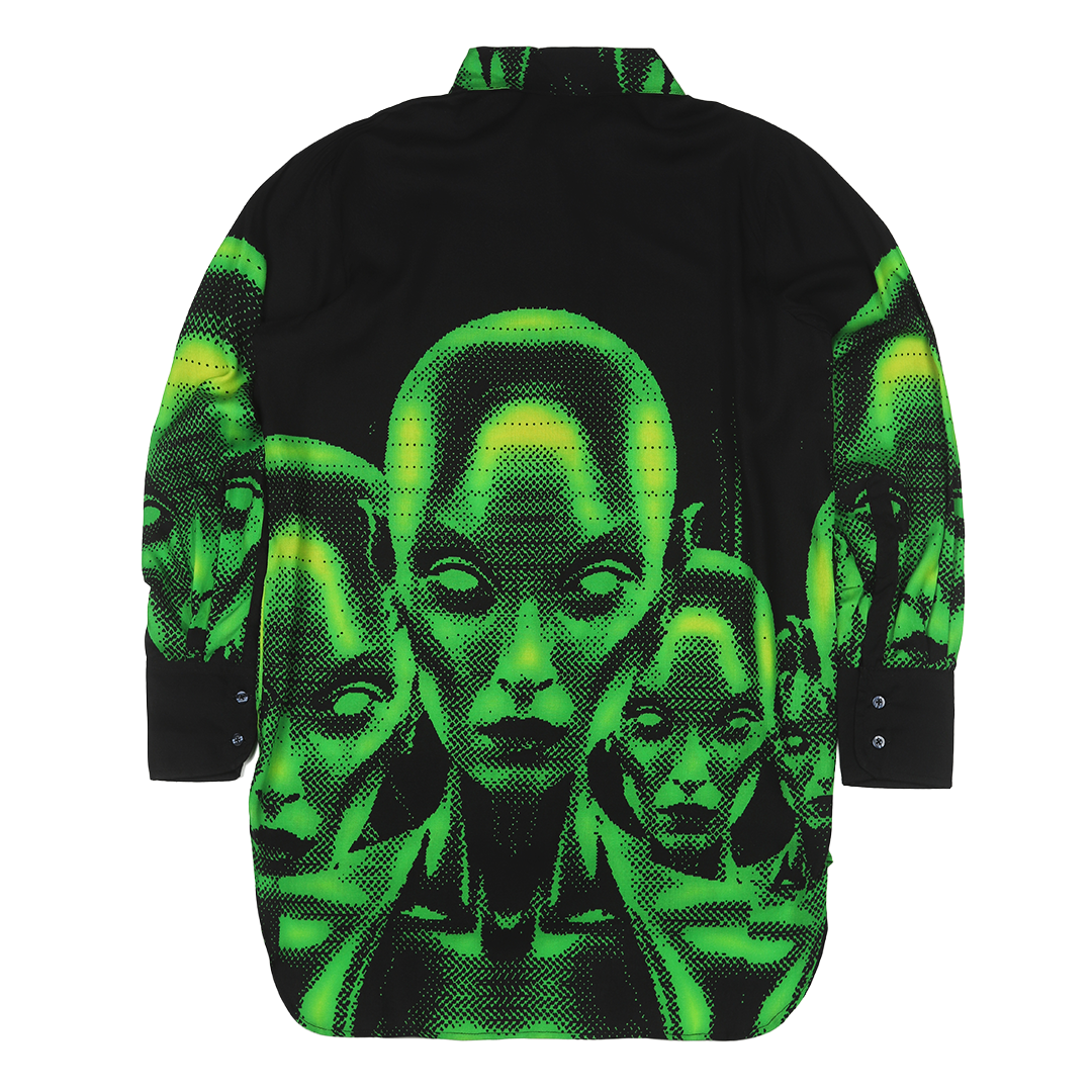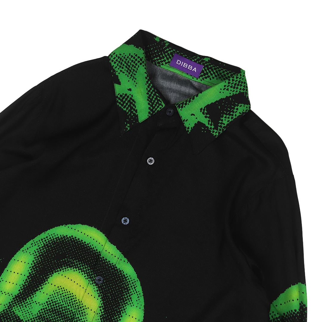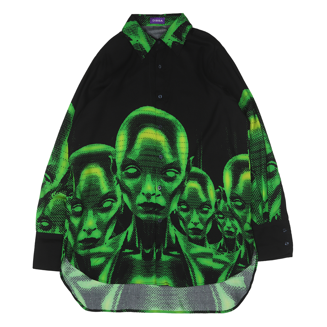 Printed cotton rayon blend long sleeve shirt with all-over print