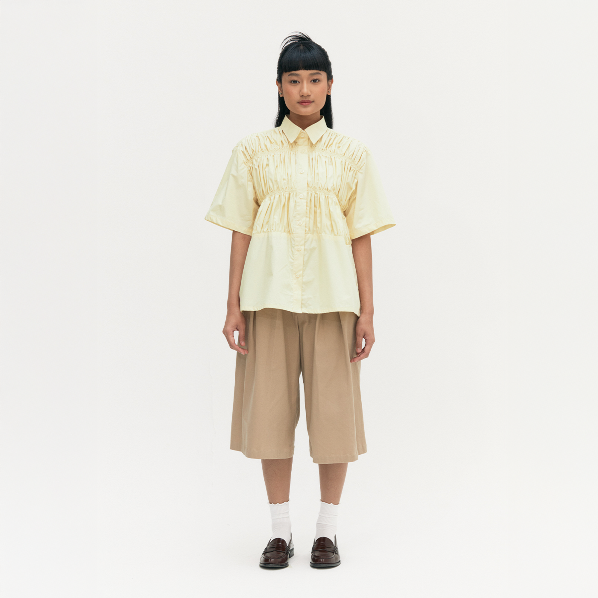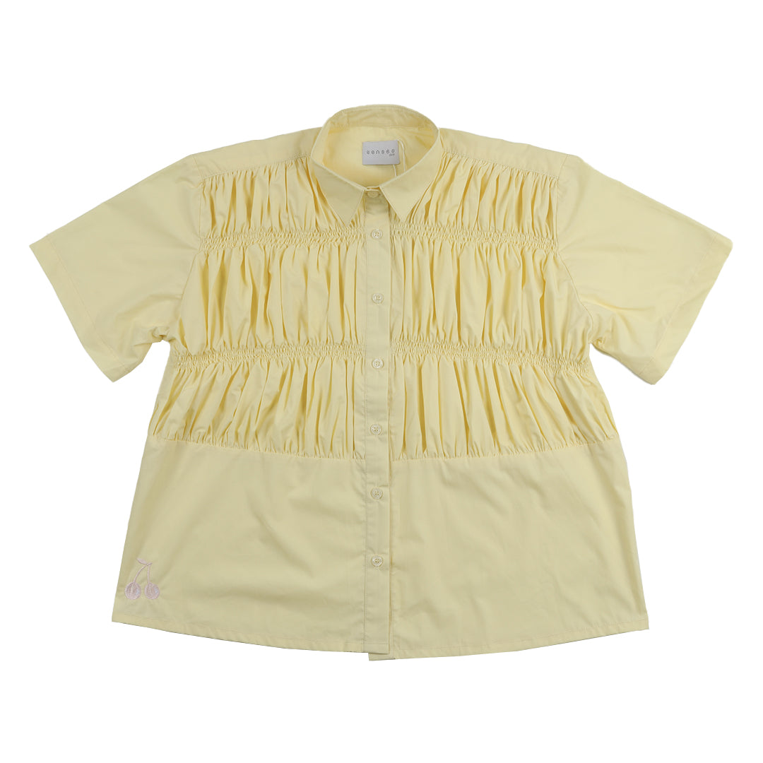 Yellow cotton top with smocking detail on the bodice