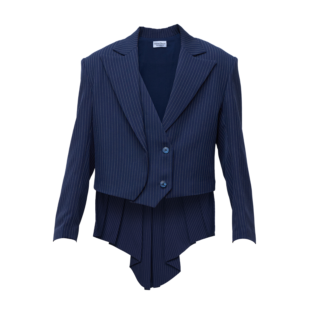 A modern tailored blazer designed with versatility in mind. The REVOLT Detachable Blazer features a removable front vest for layered styling and a detachable back tail with a hidden zipper, allowing the silhouette to change effortlessly. Each component is seamlessly integrated to maintain a clean, polished look whether worn fully assembled or stripped back. One blazer, multiple ways to wear.