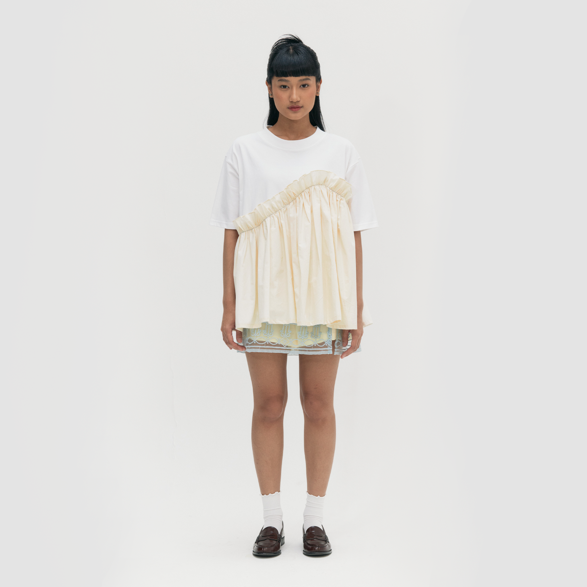 White T-shirt with off white cotton bodice variation