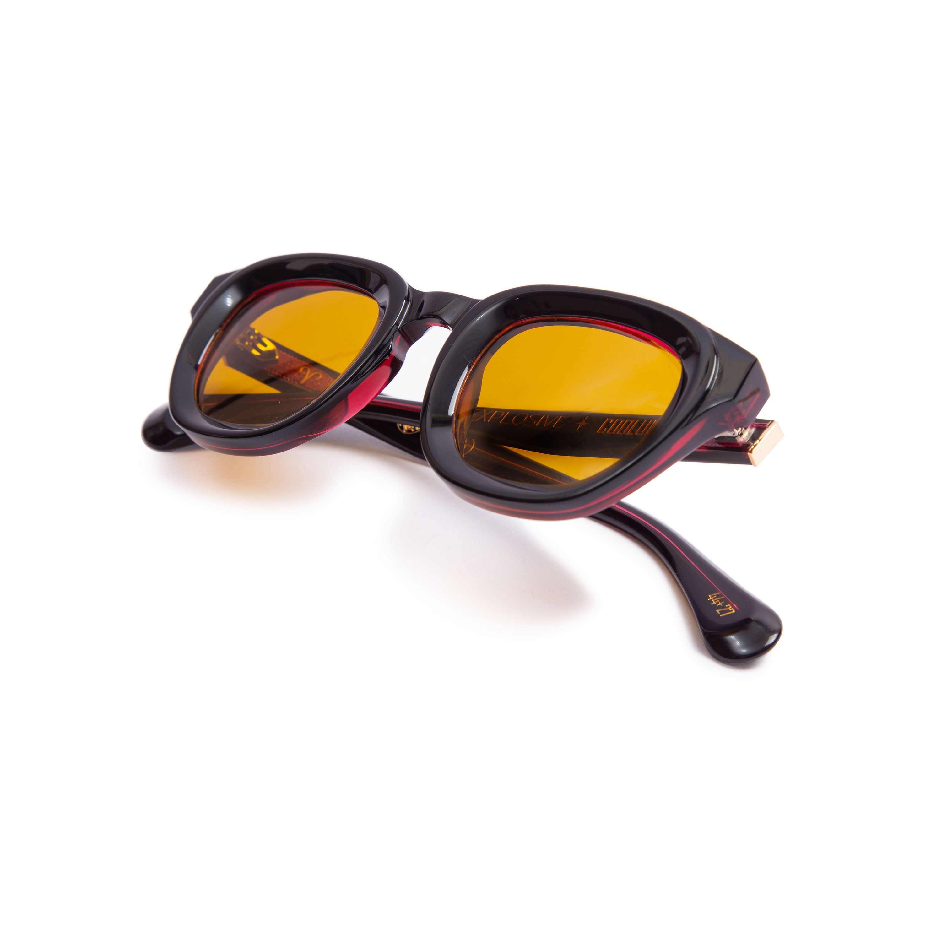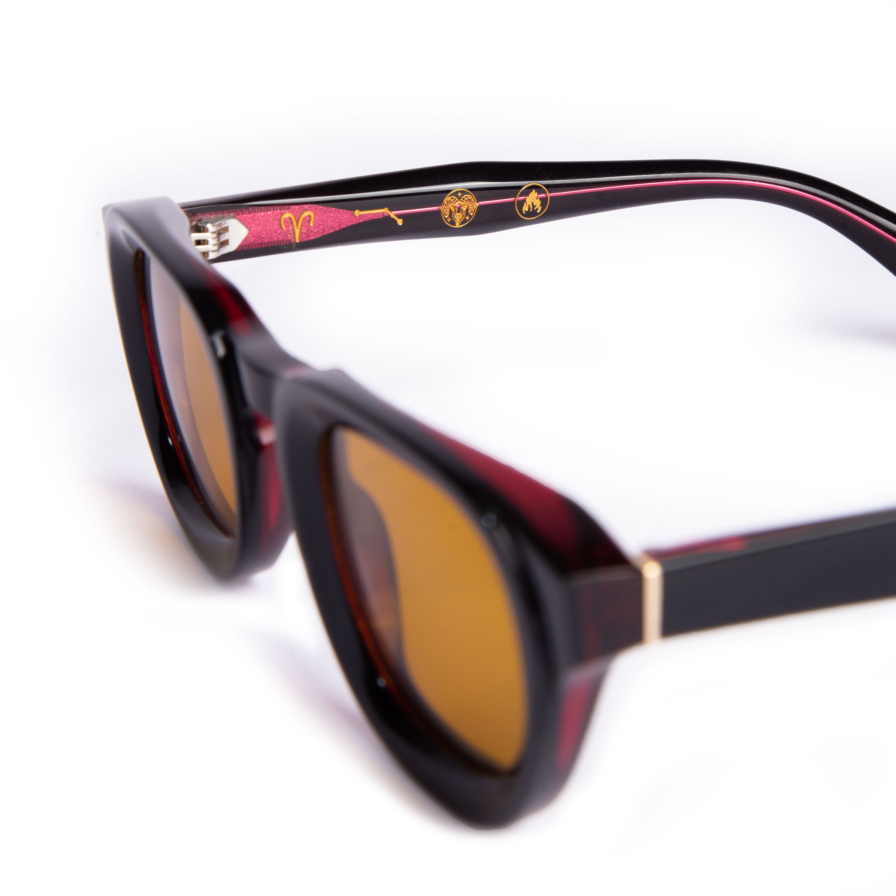 EXPLOSIVE, a representation for Aries folks. This series is for anyone who wants to add a little bit of fire to their look. Classic black frame with some cool transparent brown details in the visor. The wide, thick frame and the rounded-rectangle shapes add a touch of a fiery look.