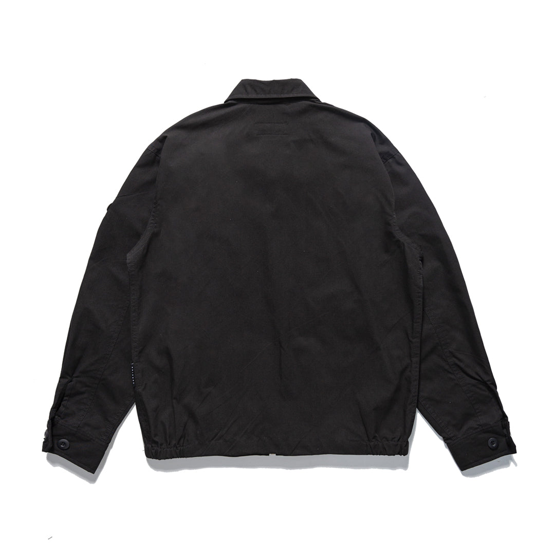 Our Work Jacket is a modernized rendition of the iconic blue-collar worker jacket, made from a durable cotton and polyester twill. Boxy fit with signature embroidery logo at the chest. The hand pockets have been enlarged for modern utility while a classic detail on the chest plea pocket provides secure storage during travel and daily commuting, Finished with a woven label at the front and side seam. Made in Jakarta.